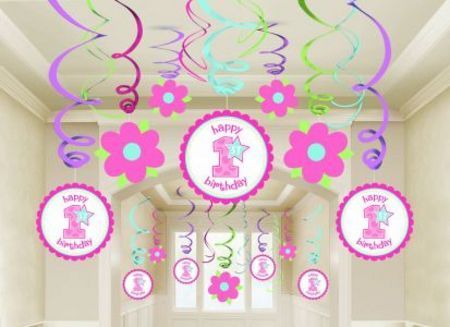 / 1st Birthday Girl Swirl Decorations AM679531