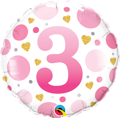 / Age 3 Pink Dots 18 inch (45 cm) Foil Balloon Q23124