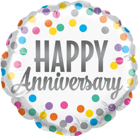 / Anniversary Confetti Dots 4 inch (10 cm) Foil Balloon Q25238 – F – Uninflated, Heat Sealer Required