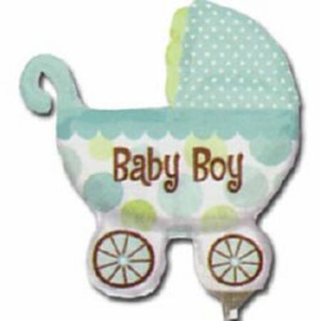 Baby Buggy Boy Mini Shape Foil Balloon ANA18070 – I – Inflated, On Cup & Stick