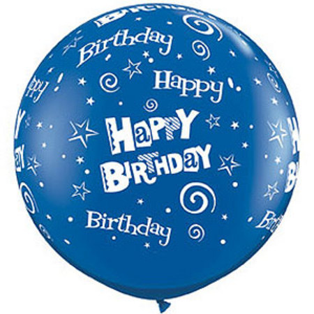 / Birthday Stars & Swirls Sapphire Blue 3′ (90cm) Latex Balloon Q46322
