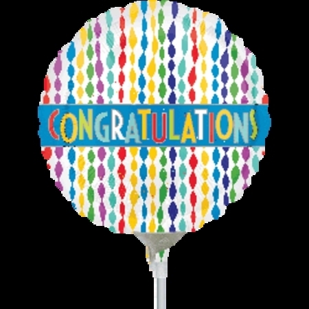 Congratulations Banner in Streamers 9 inch (23cm) Foil Balloon ANA28878 – I – Inflated, On Cup & Stick