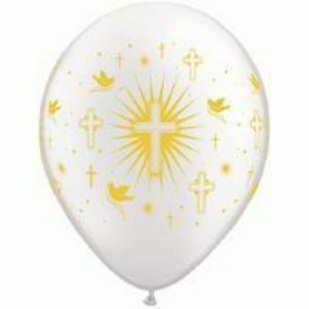 / Cross & Doves Pearl White with Gold Ink Latex Balloon Q86384