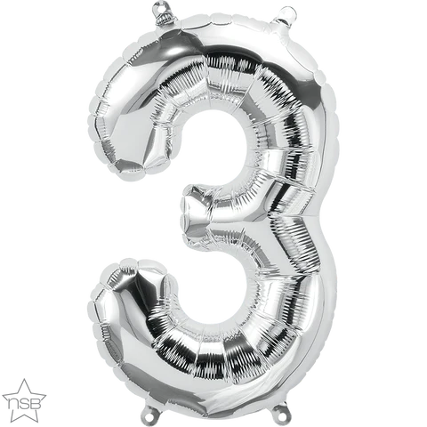 Number 3 Silver 16 inch (40cm) Foil Balloon Q59087