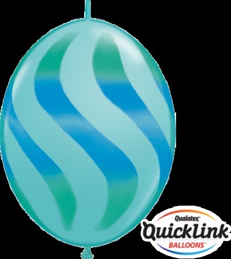 Quick Link 12inch (30cm) Caribbean Blue, Green & Blue Wavy Stripes Latex Balloons Q28108