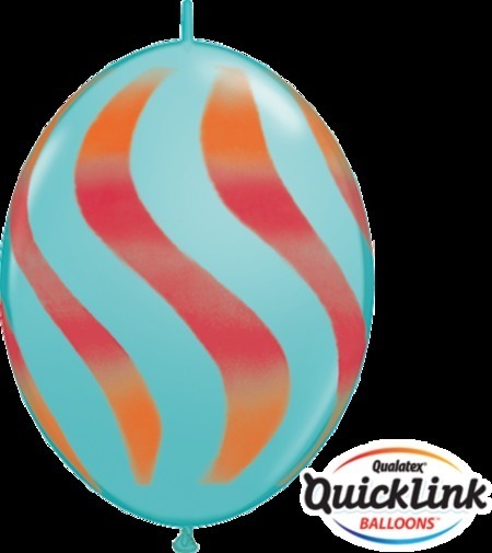 Quick Link 12inch (30cm) Caribbean Blue, Orange & Red Wavy Stripes Latex Balloons Q28094