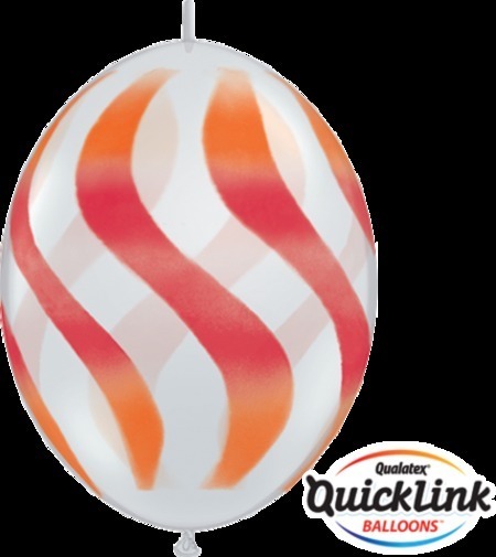 Quick Link 12inch (30cm) Diamond Clear, Red & Orange Wavy Stripes Latex Balloons Q28095