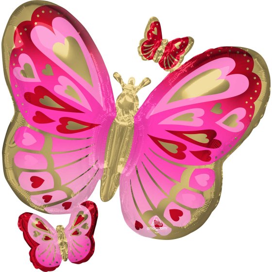 / Red, Pink & Gold Butterfly SuperShape Foil Balloon ANA43638