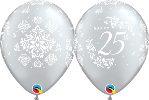 / Silver Happy 25th Anniversary Damask 11 inch (28 cm) Latex Balloons Q49689