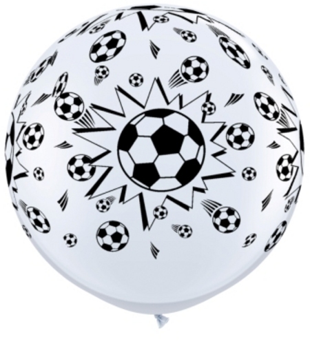 / Soccer Balls Around White 3′ (90cm) Latex Balloon Q41703