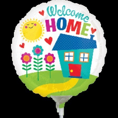 Welcome Home 9 inch (23cm) Foil Balloon ANA33730 – I – Inflated, On Cup & Stick